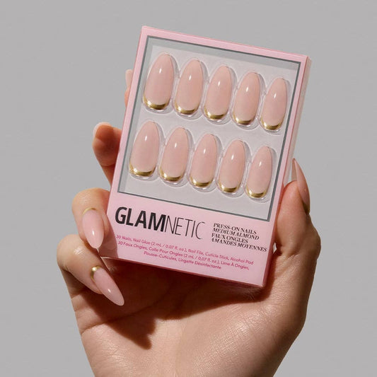 Goal Getter Press-On Nails | Medium Almond Nude Gold Luxe Nails