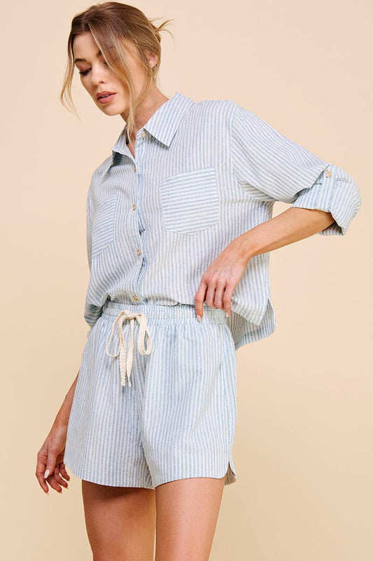 Cropped Long Sleeve Linen Striped Shirt