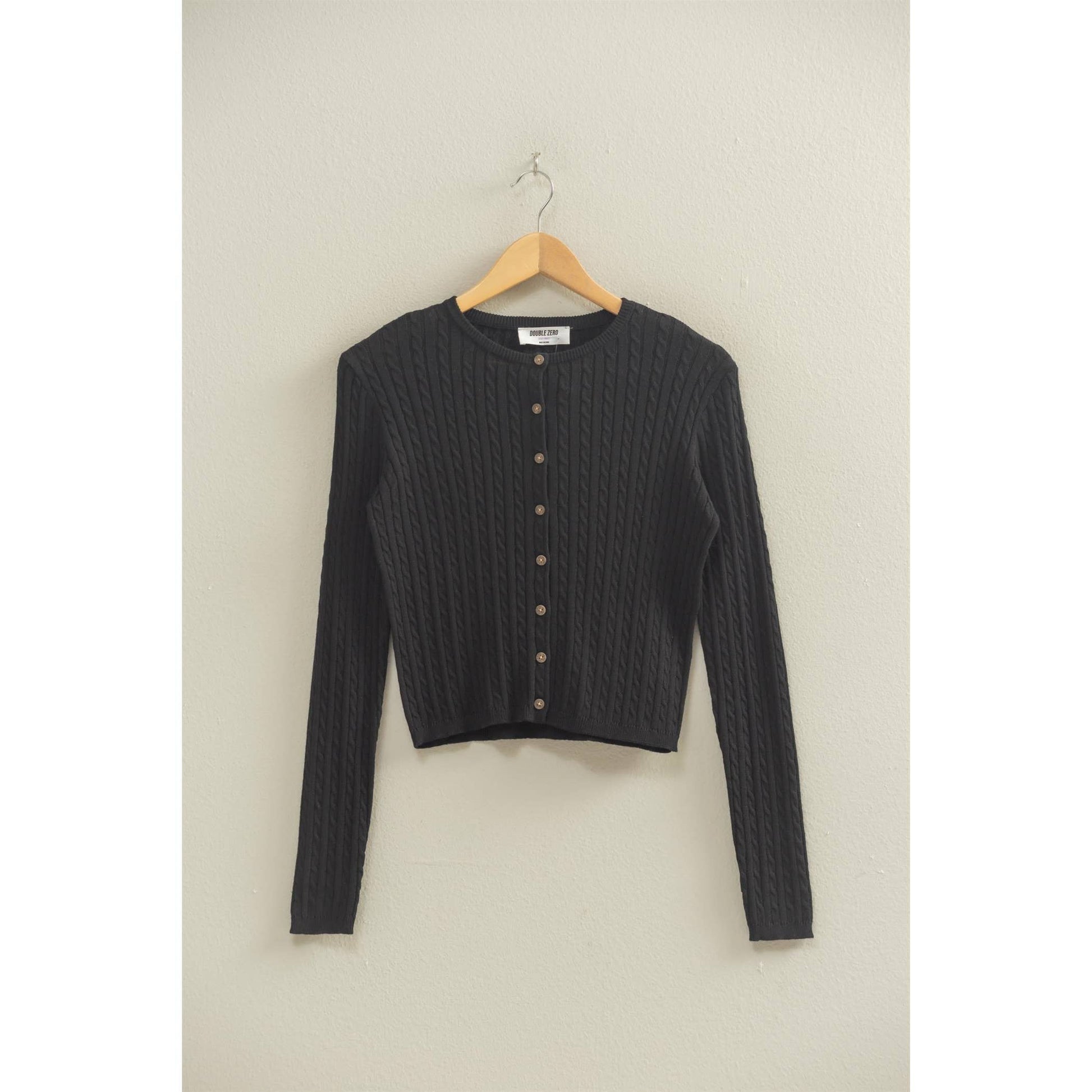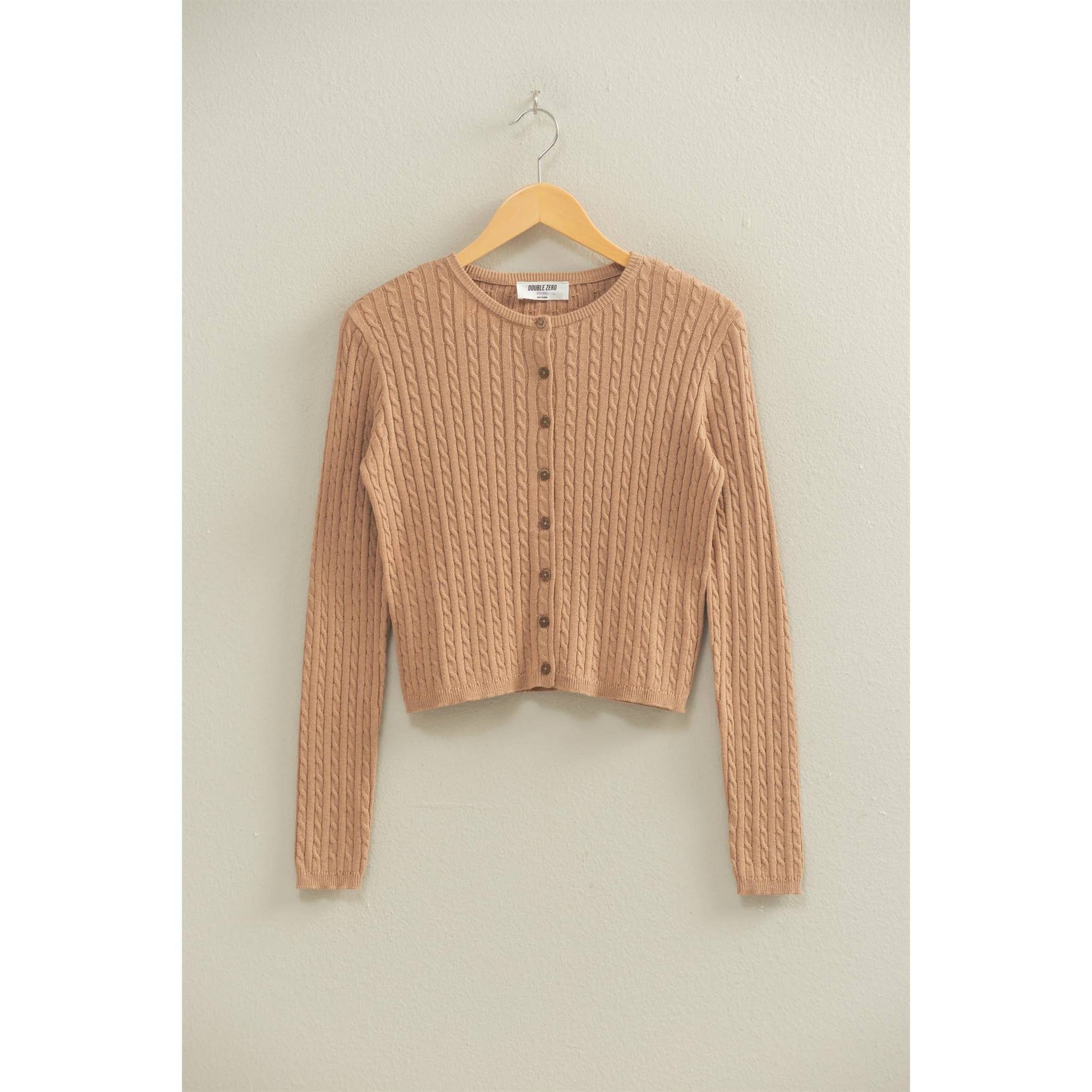 Look Poised And Put Together Whenever You Wear This Cardigan. Cable Knit Construction Shapes This Piece That Features Long Sleeves And A Buttoned Front. The Cardigan Offers A Slim-Fit Silhouette And Can Be Dresses Up Or Down. 55% Cotton 45% Acrylic Model Is 5' 7" Tall, 32" Chest, 25" Waist, 36" Hips And Wearing A Size Small Imported.