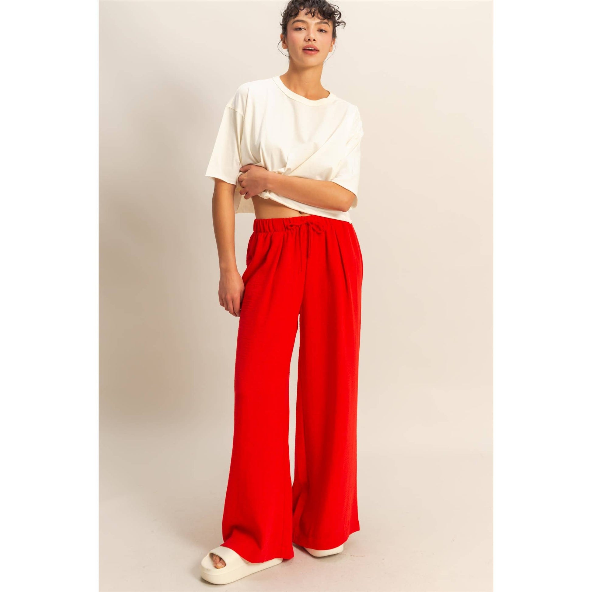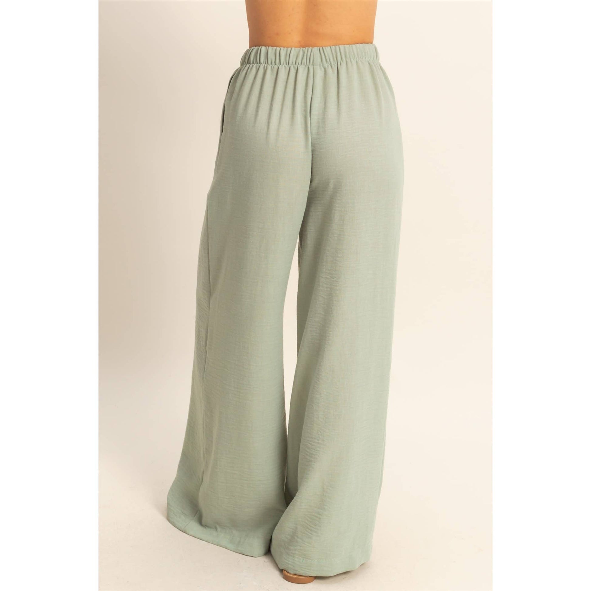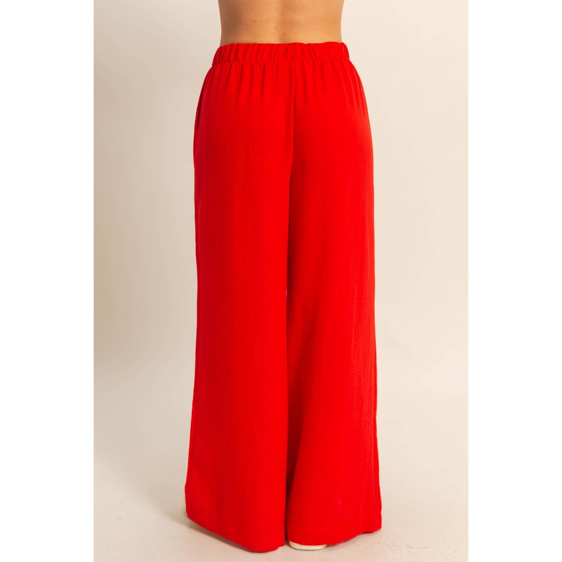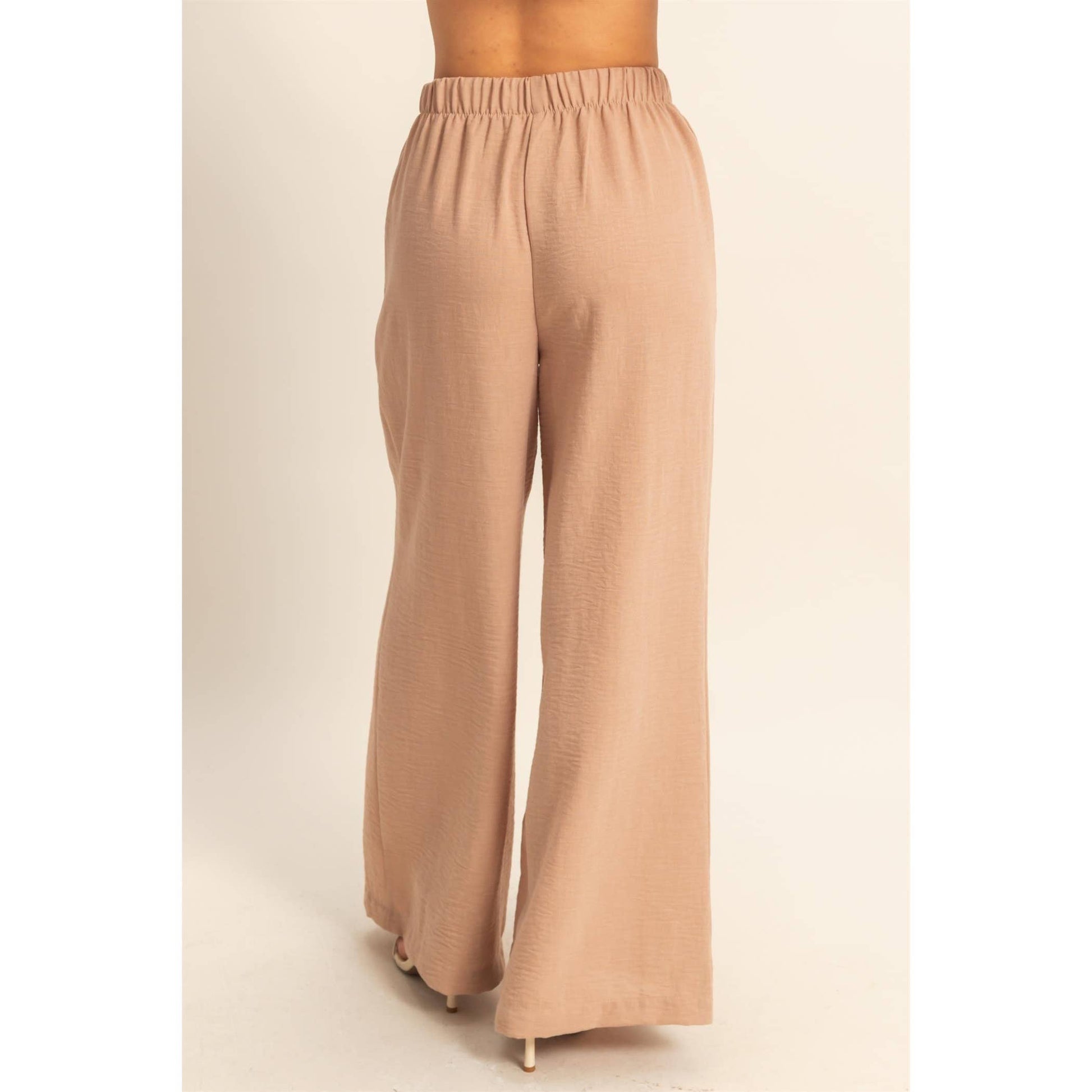 Stay comfy and stylish with these high-rise wide leg pants! The elasticized waist ensures a perfect fit, while the flowy pant legs provide a flattering silhouette. Perfect for casual days when you still want to look cute.