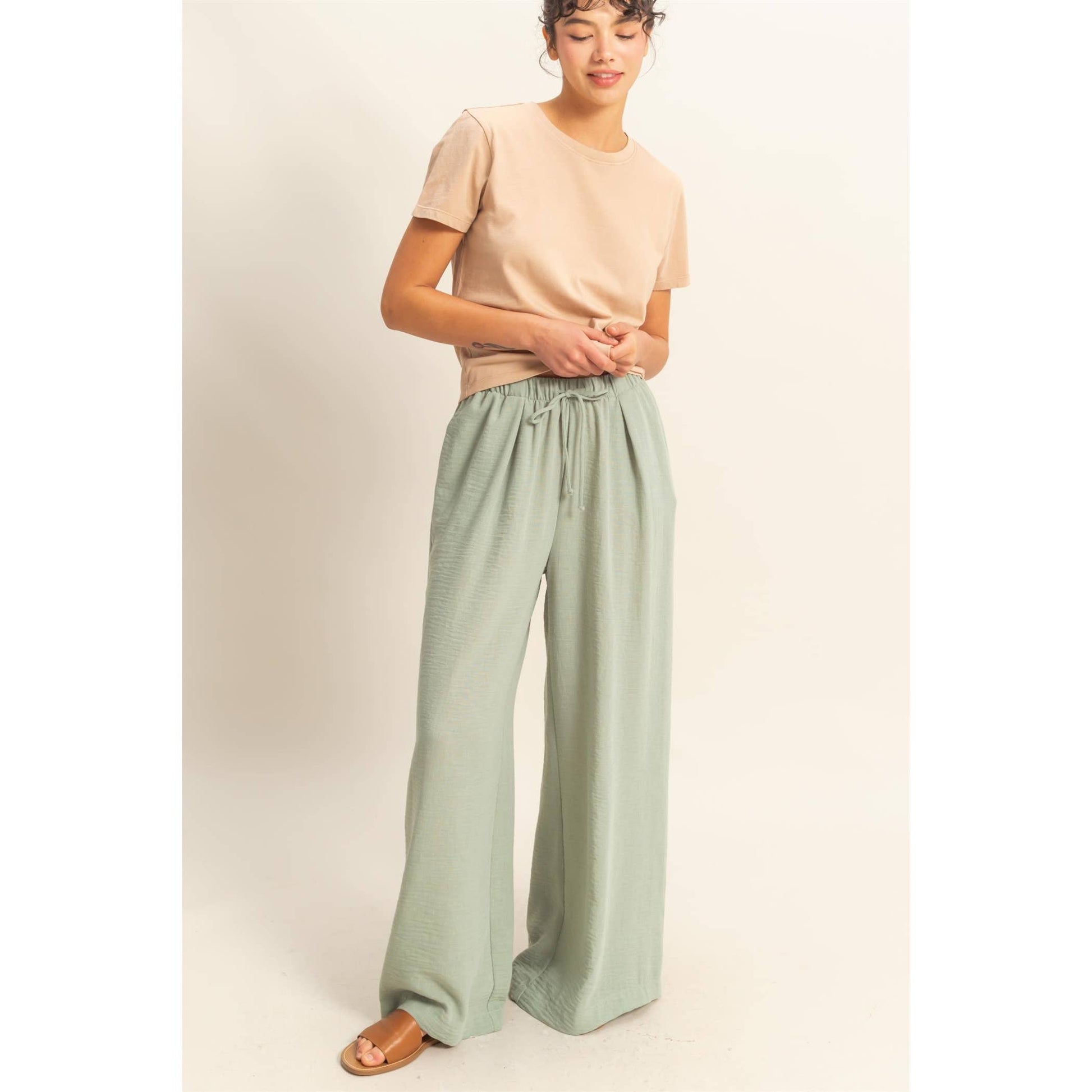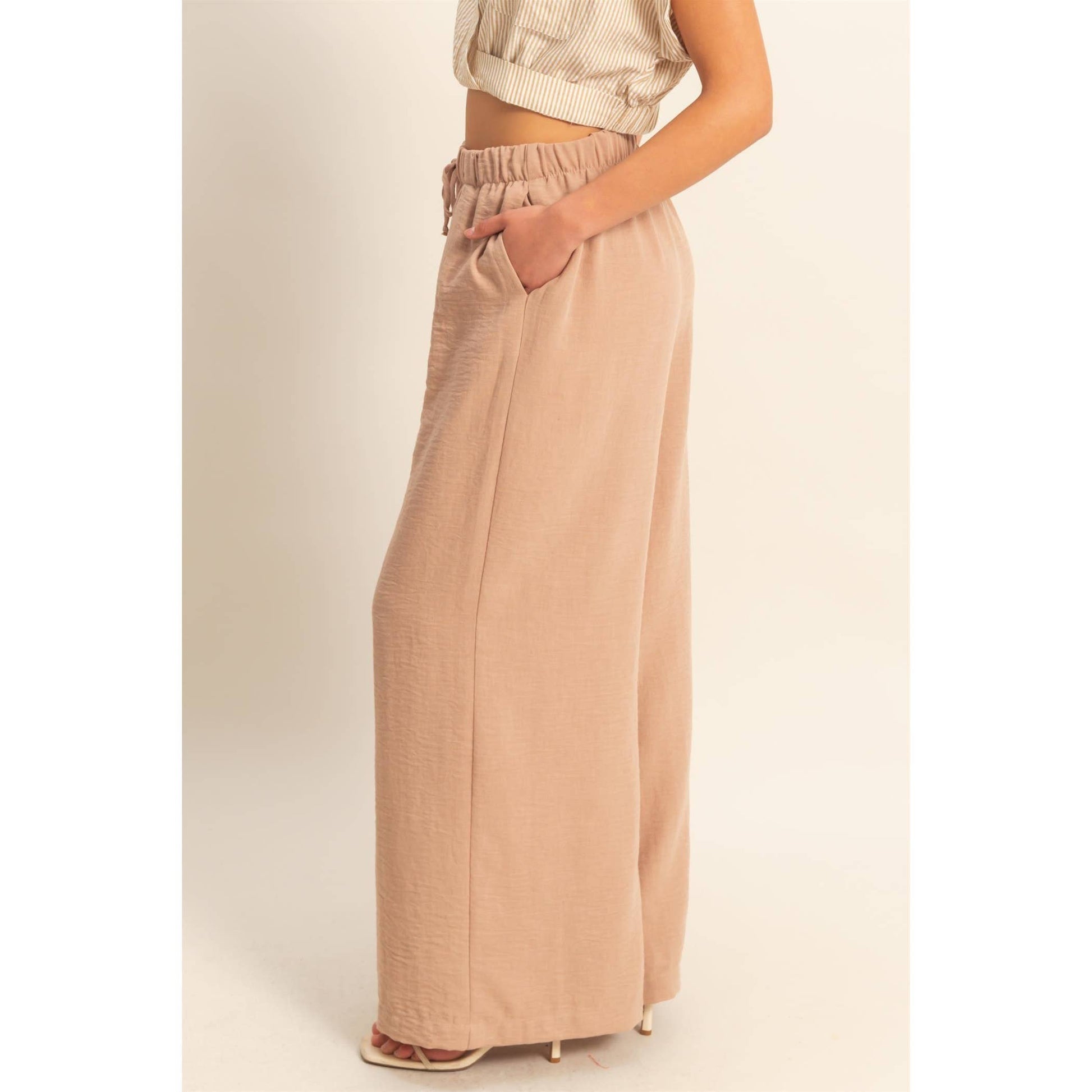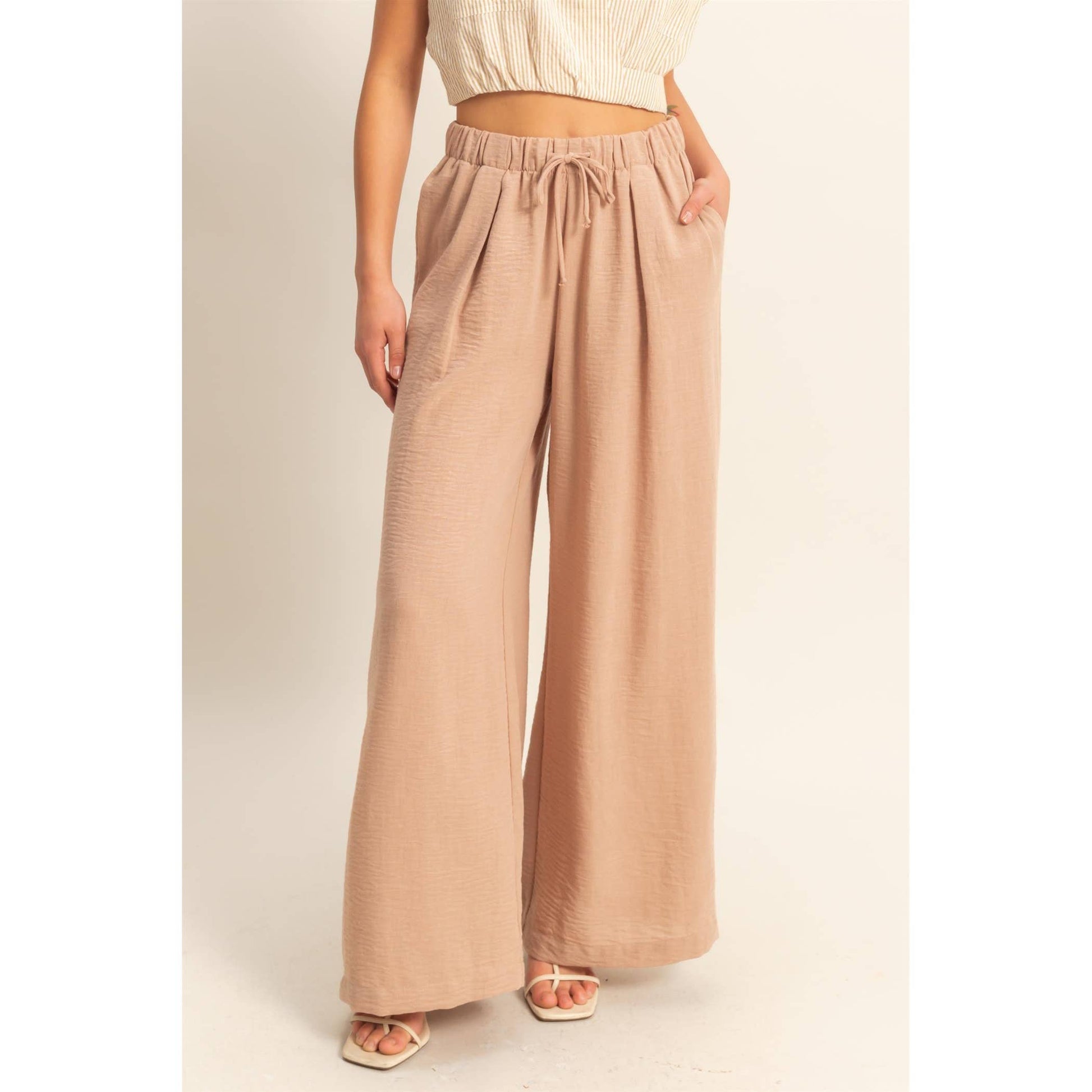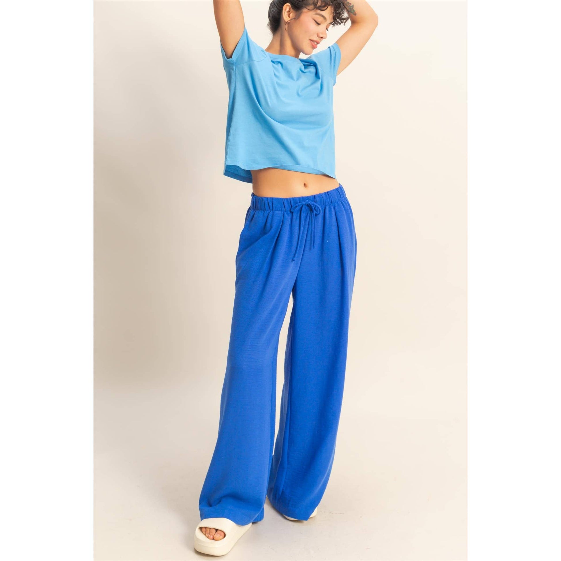 Stay comfy and stylish with these high-rise wide leg pants! The elasticized waist ensures a perfect fit, while the flowy pant legs provide a flattering silhouette. Perfect for casual days when you still want to look cute.