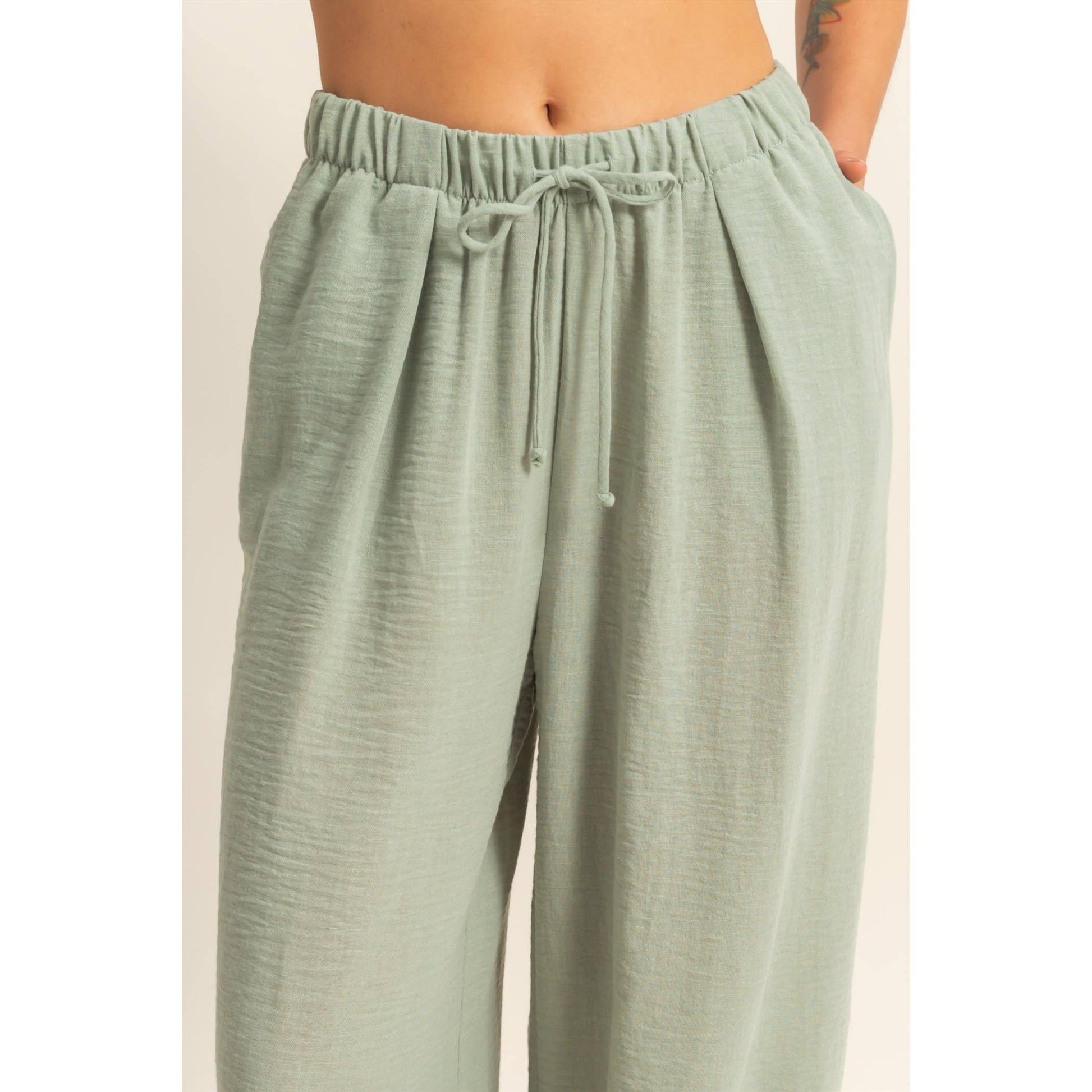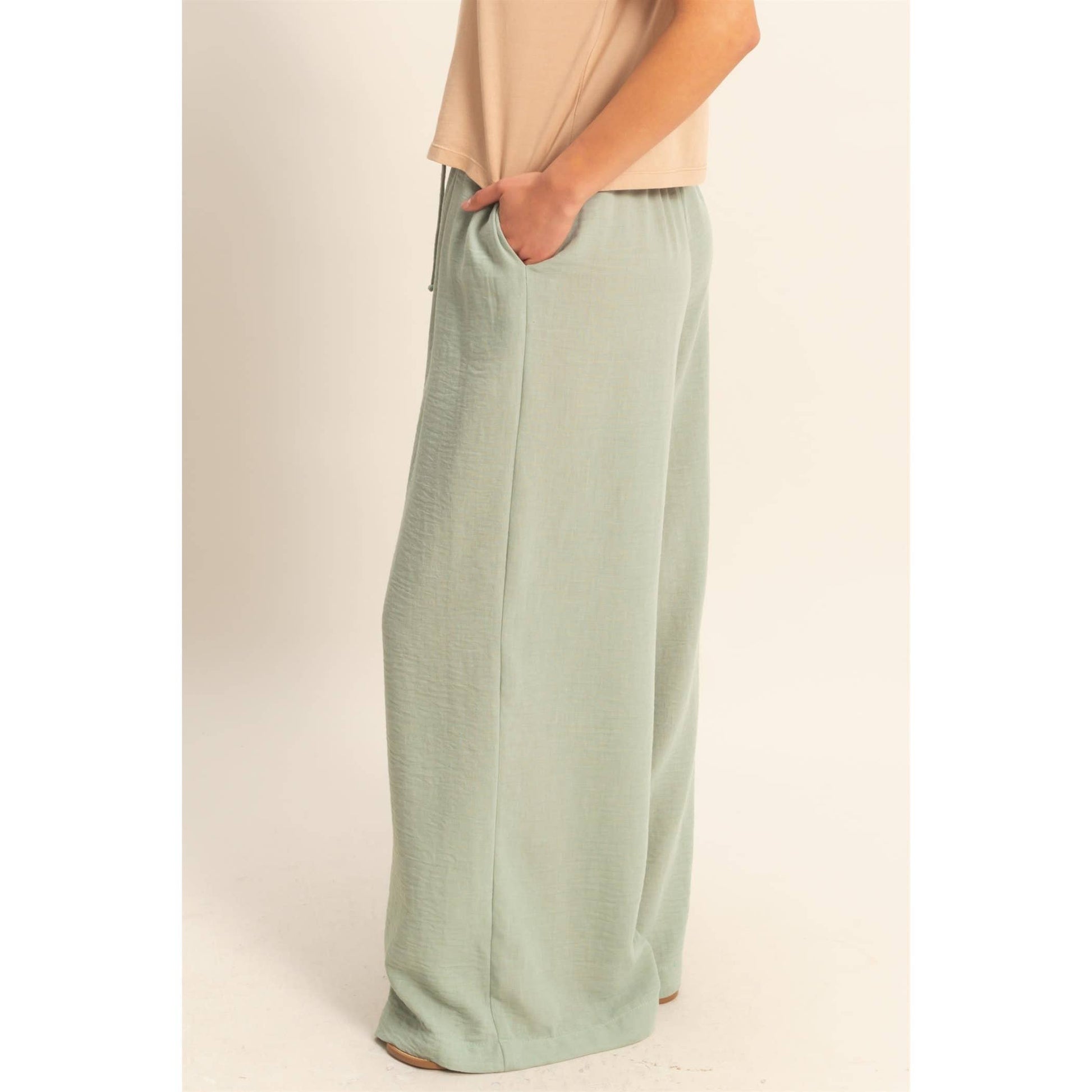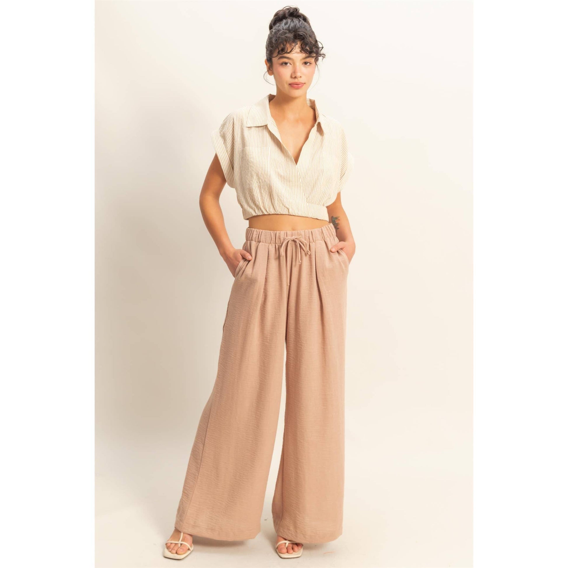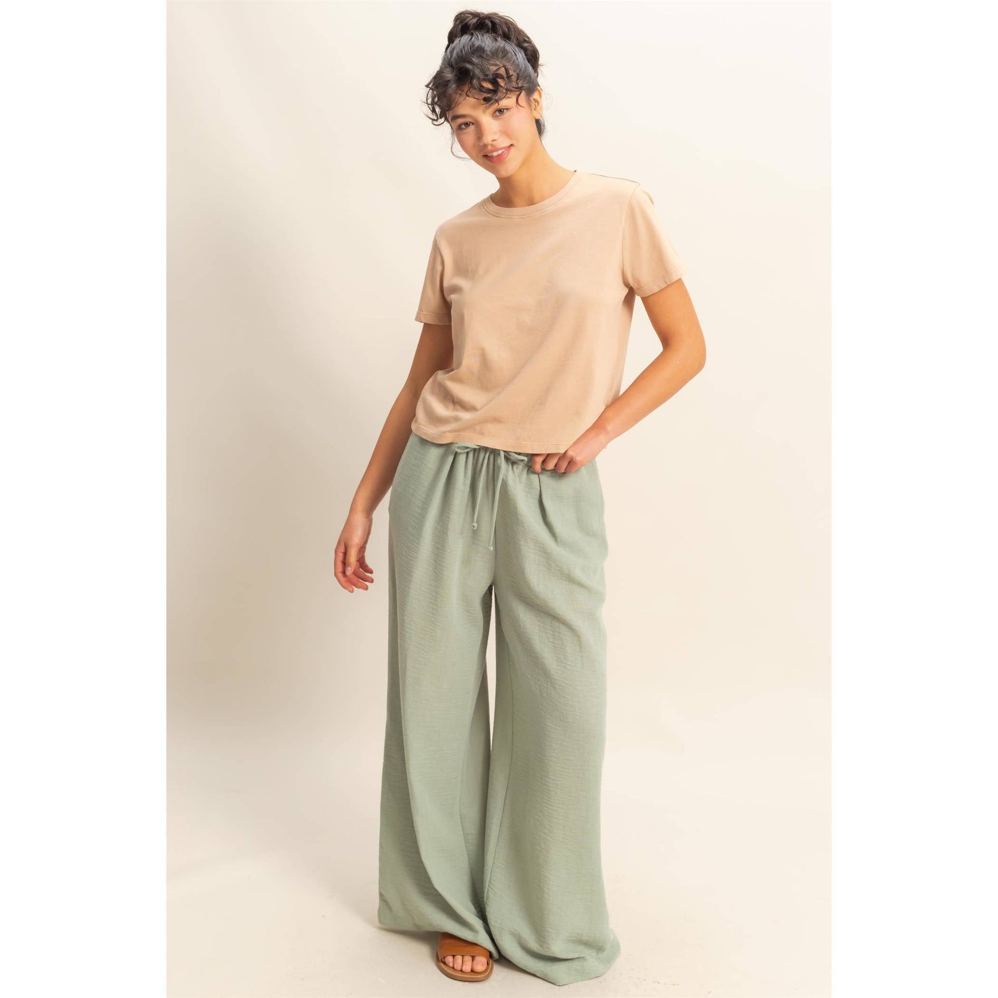 Stay comfy and stylish with these high-rise wide leg pants! The elasticized waist ensures a perfect fit, while the flowy pant legs provide a flattering silhouette. Perfect for casual days when you still want to look cute.