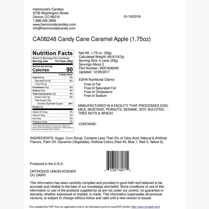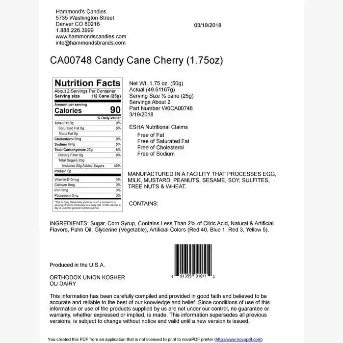 Classic holiday nostalgia meets handcrafted perfection with Hammond's Candy Canes. Made in small batches with time-honored techniques, these hand-spun jumbo canes deliver bold flavor in every shimmering swirl. I Fat-free, cholesterol-free, sodium-free, gluten-free ⒠Approximately 8" from the crook of the candy cane to the end. ⒠Hammond's candy canes are handmade, and the size may vary Made from scratch, we create prized confections by hand. We keep quality and freshness in mind when it comes to our ingredients. Our long-standing traditional recipes require only the highest quality ingredients. Our small batch candy is crafted with care to ensure bite-after-bite of pure, sweet, goodness. Locally sourced, when possible, the ingredients remain simple⦠Drizzle, dollop, dip and devour, hand pulled perfection that no one can resist.