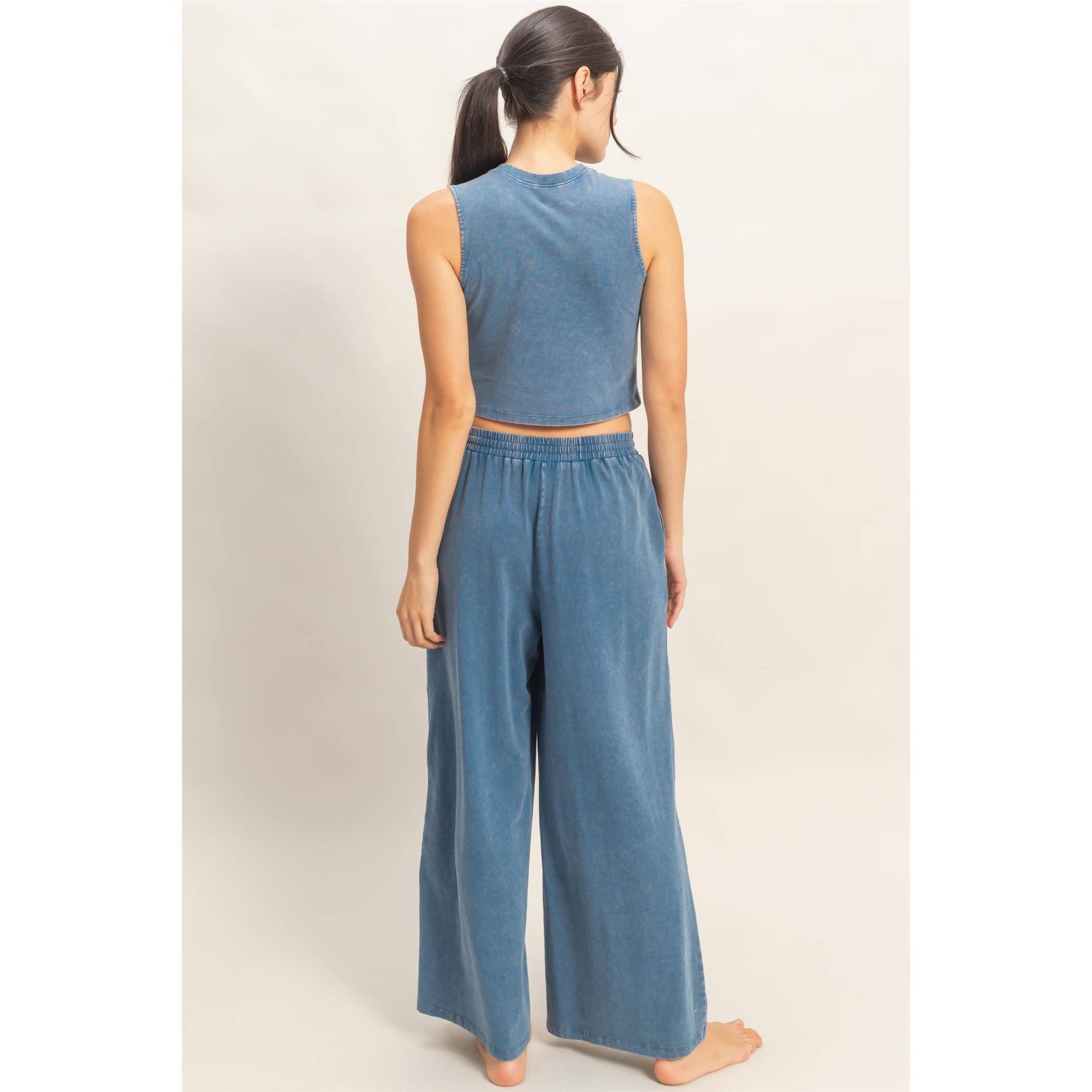 Mineral Washed Sleeveless Top & Wide Leg Pants Set